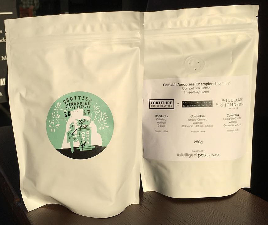 - All competitors use the same coffee and they're sent it in advance so they can practice prior to the big event. This year, organisers have taken the opportunity to showcase three great new Edinburgh roasters: Machina, Fortitude and Williams & Johnson who've produced a three-way blend. According to Dave from Brew Lab, "blends have pretty much disappeared from speciality coffee, but when you have really high quality single origins as the components, you can get some pretty special coffee too. Its going to be really complex and interesting."